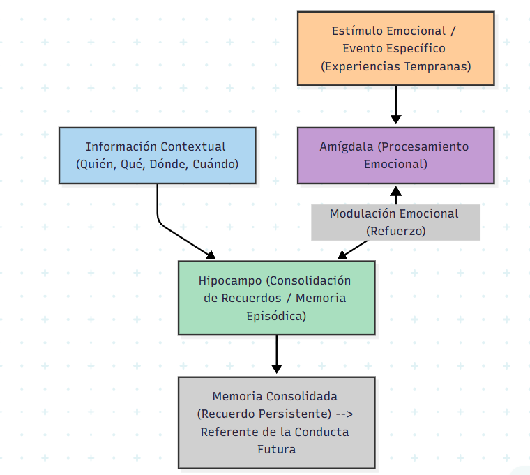 Esto explica por qué los recuerdos cargados de emoción, como experiencias de cuidado o desapego, tienen mayor probabilidad de persistir y convertirse en referentes de la conducta futura (Ruetti & Ramírez, 2022).