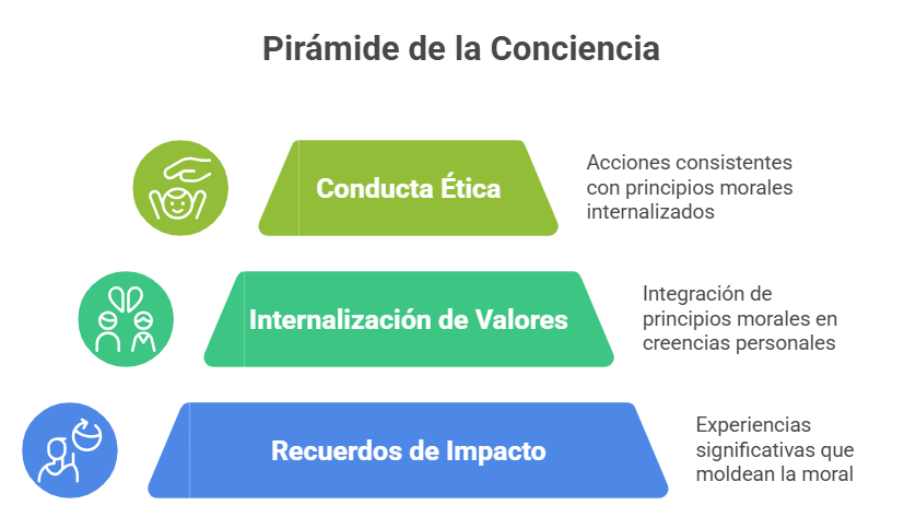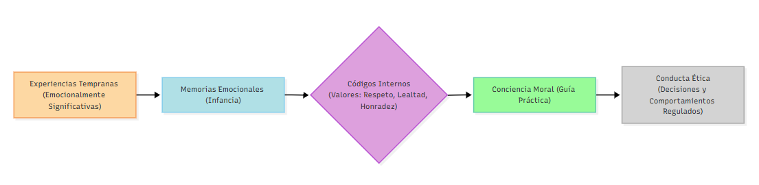 Cuando estas memorias se asocian a valores como respeto, lealtad y honradez, actúan como códigos internos que se activan frente a dilemas éticos. De este modo, la conciencia moral no es abstracta, sino una guía práctica que regula decisiones y comportamientos (Schipper & Petegem, 2021).