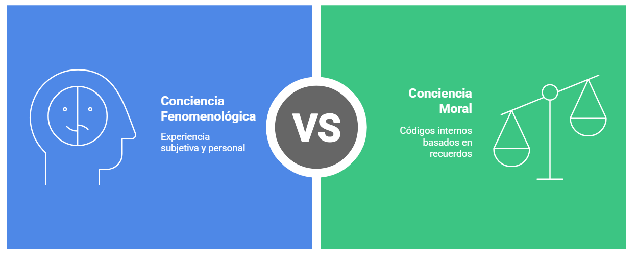 Figura 5. Comparación entre conciencia fenomenológica (experiencia subjetiva) y conciencia moral (códigos internos basados en recuerdos de impacto).